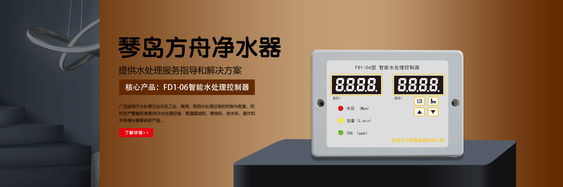 青島方舟電器集團有限公司是國內凈水設備生產、銷售的公司,為您提供水處理解決方案。公司聚集了經驗豐富的技術和經營管理人才,研發、生產出當前凈水行業較為齊全的產品系列,公司核心的產品“FD1水處理控制器”系列,可廣泛運用于水處理行業涉及工業、商用、民用水處理設備的控制與配套......